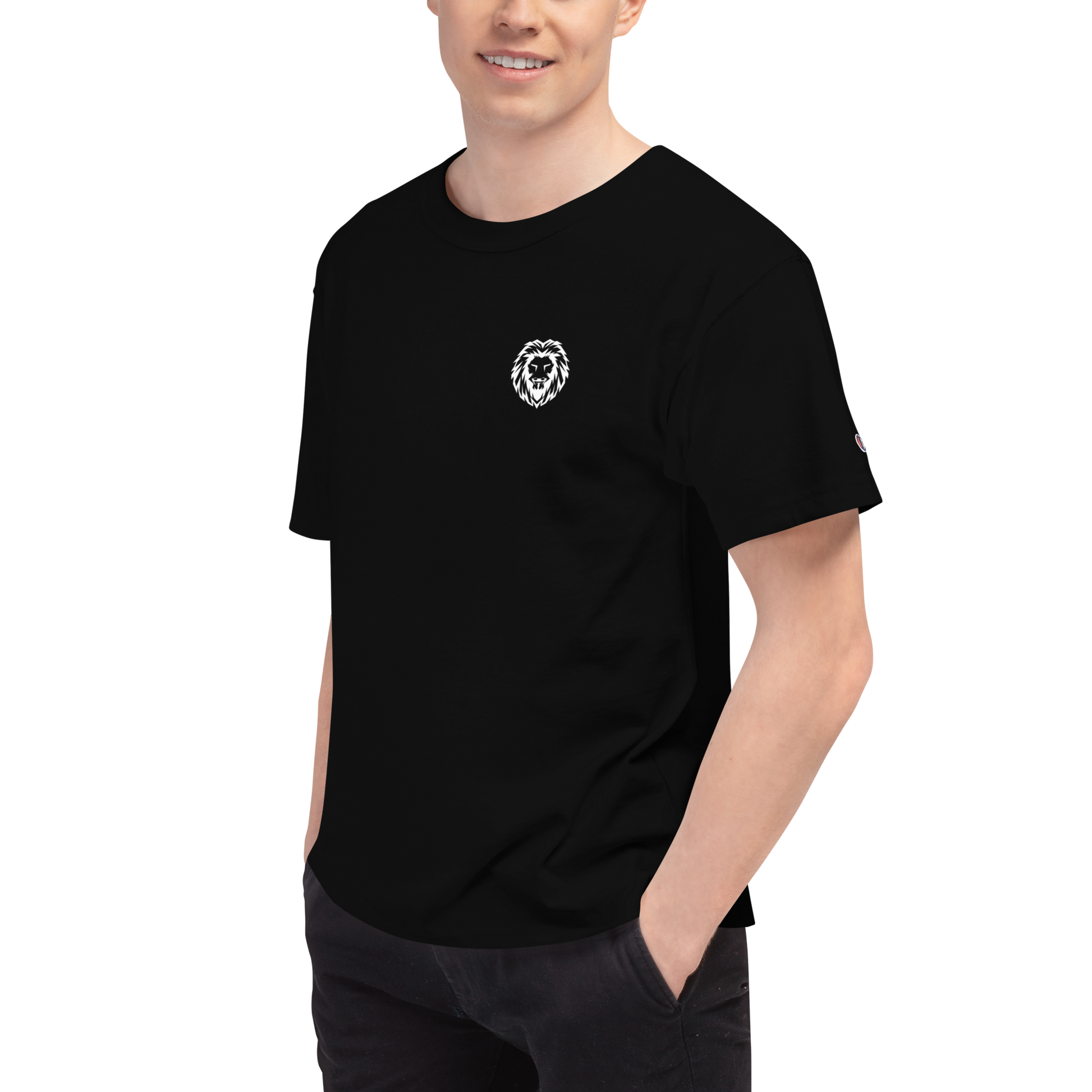• Champion “C” logo patch on the left sleeve